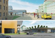 4. Размещение платформ общественного транспорта (автобус, троллейбус), остановочных комплексов, в т.ч. для такси и личного автотранспорта у здания вокзала, с сообщением с первым, цокольным этажом вокзала и подземным общественным комплексом.